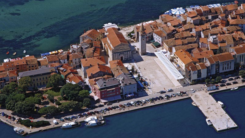 Umag, die erste Stadt beim Eintritt Istriens aus dem Norden. Bereits die Einfahrt nach Istrien vom Norden her begeistert durch Charme, Angebotsvielseitigkeit und -reichtum. Die Rede ist von Umag, dem Städtchen, das mit seiner 45 km langen Küste und Hinterland die Besonderheiten der ganzen Region synthetisiert, und es ist wohl die beste Einführung in ein anderes Erlebnis des Mittelmeerraumes.